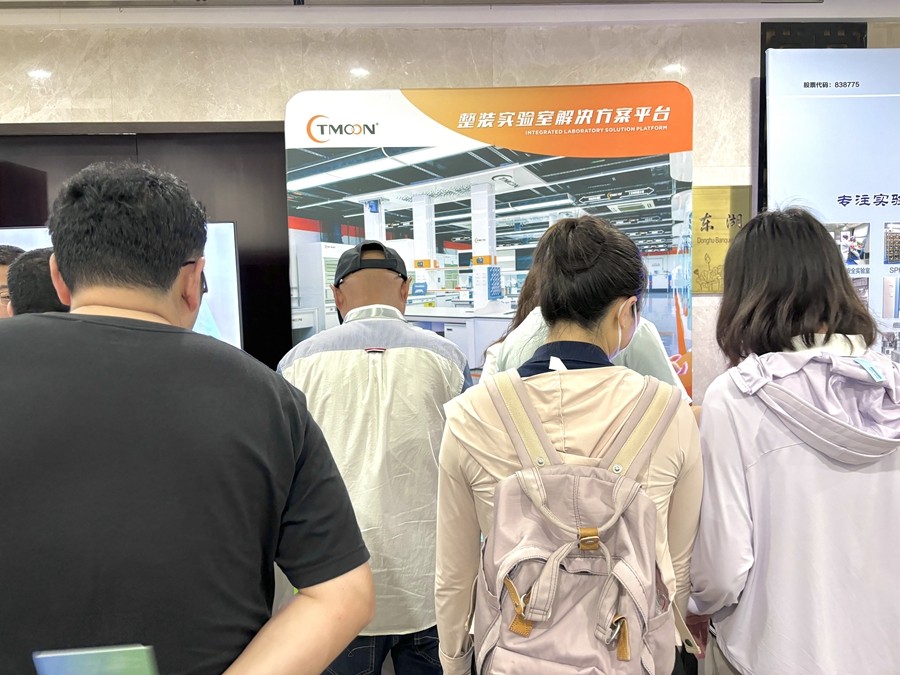 眾多參會(huì)老師齊聚TMOON展位,圍繞“整裝實(shí)驗(yàn)室方案”展開(kāi)熱烈討論。他們對(duì)TMOON的模塊化設(shè)計(jì)、智能化管理以及高效、便捷、環(huán)保節(jié)能等優(yōu)點(diǎn)表示出濃厚興趣,紛紛表示這一方案不僅能提升實(shí)驗(yàn)室使用效率,更能為科研工作者和學(xué)生營(yíng)造出一個(gè)更為安全、舒適的科研環(huán)境,充分滿(mǎn)足現(xiàn)代科研教學(xué)的需求。