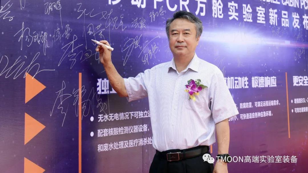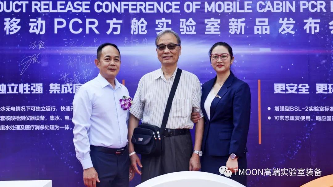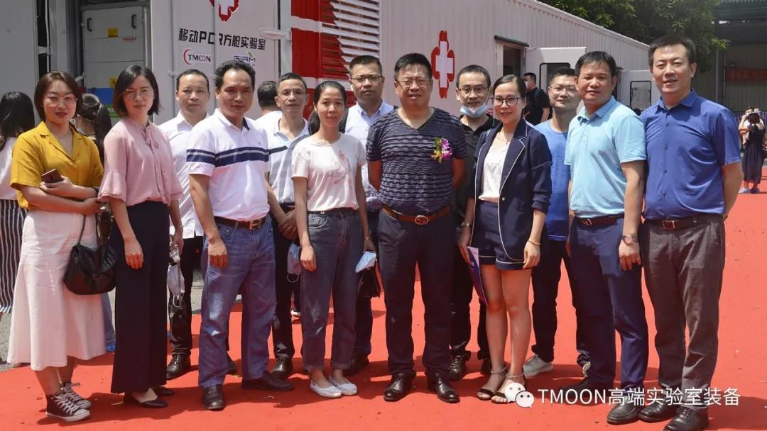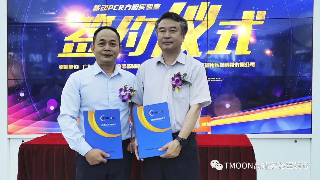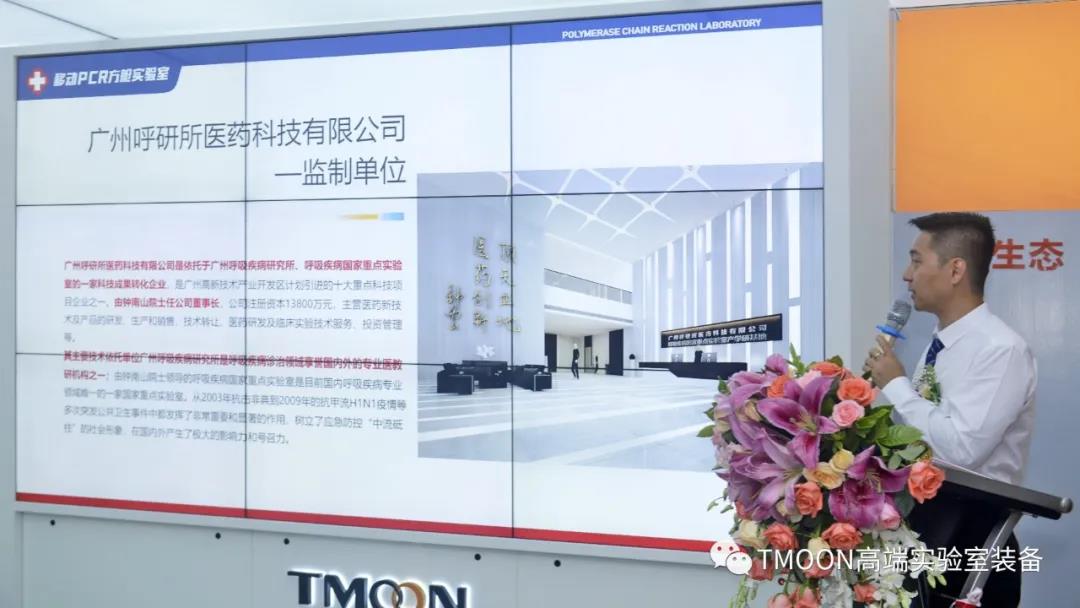 在發(fā)布會上,廣州呼研所醫(yī)藥科技有限公司總經(jīng)理與 TMOON 品牌舉行了戰(zhàn)略合作簽約儀式,并與多家單位領(lǐng)導及代表一起進行移動PCR方艙實驗室的揭幕儀式。